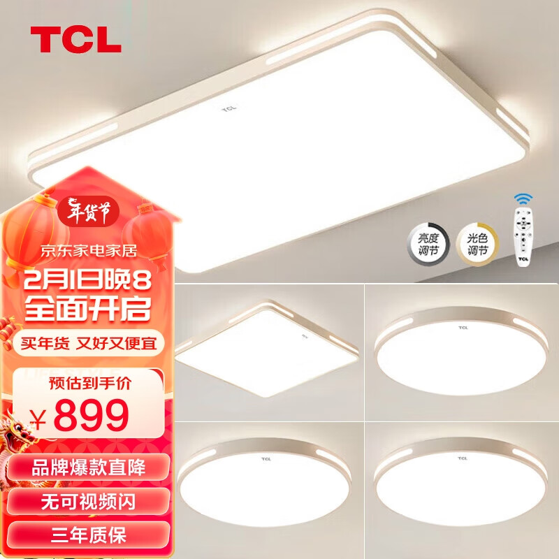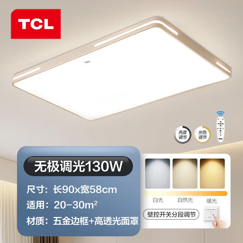 TCL客厅灯LED吸顶灯现代简约中山灯具 知玉系列三室两厅套餐价格:1049.00元!