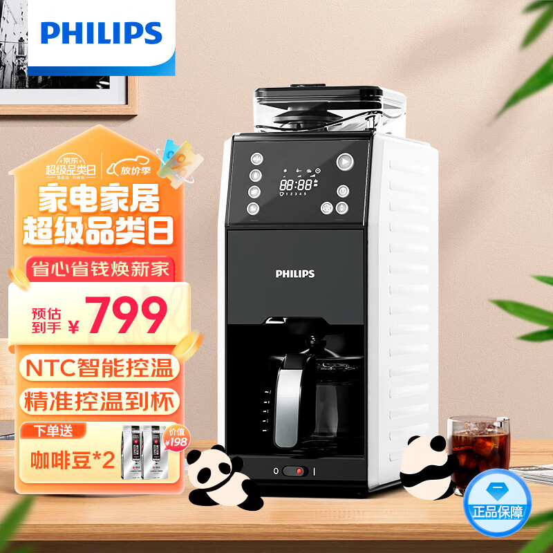 飞利浦(PHILIPS)熊猫机美式全自动家用咖啡机全自动清洗3档研磨一体机 可拆卸式 豆粉两用送礼推荐HD7901/10价格:799.00元!