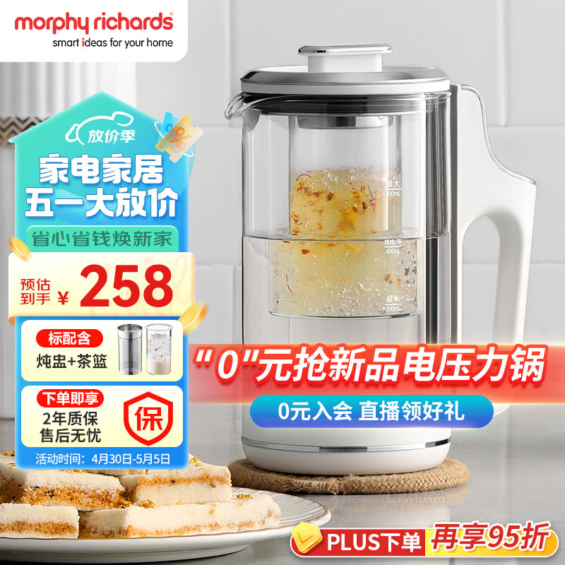 摩飞电器(Morphyrichards)养生壶 便携迷你煮茶器 烧水壶养生杯 小型办公室家用多功能煮茶壶一体式热水壶0.6L MR6086 白价格:258.00元!