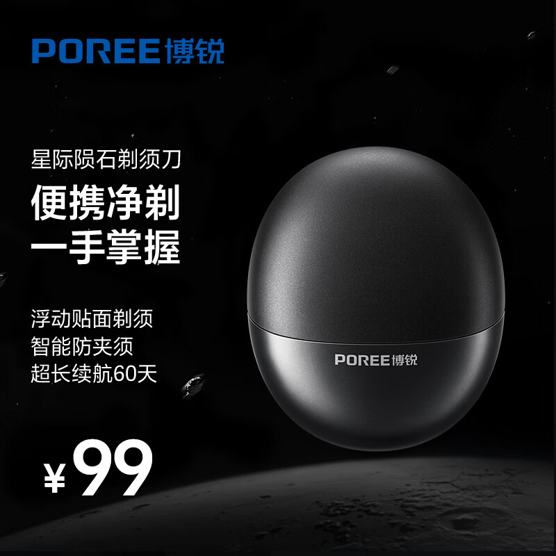 博锐小陨石智能电动剃须刀男士刮胡刀便携款全身水洗迷你刮胡须刀节日礼物送男友送老公 星际黑P001价格:99.00元!