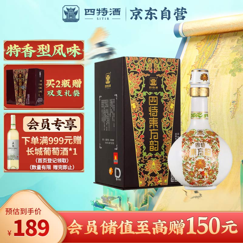 四特 东方韵 弘韵 特香型白酒 52度 500ml 单瓶装价格:165.00元!