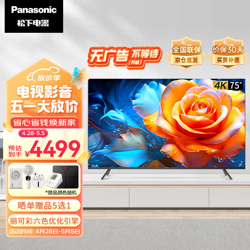 松下(Panasonic)电视LX560 75英寸 丽可彩4K屏MEMC HDR10 蓝牙语音 开机无广告智能电视机 TH-75LX560C价格:4499.00元!