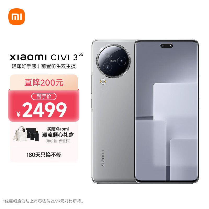 小米 Civi 3 前置仿生双主摄 光学防抖镜头 12GB+512GB 椰子灰 5g手机 澎湃OS SU7 汽车互联 AI手机价格:2499.00元!
