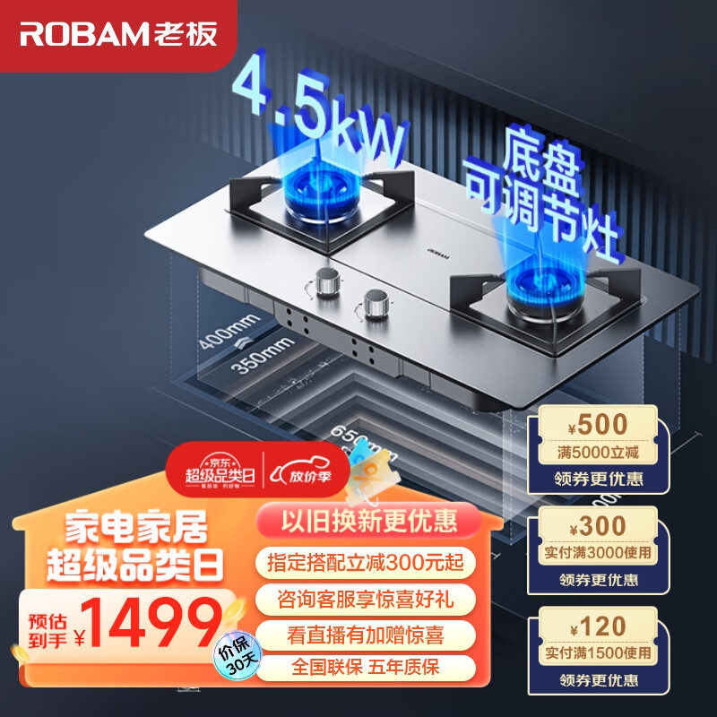 老板(Robam)家用燃气灶(液化气)4.5kW嵌入式不锈钢燃气灶 耐用易打理灶具灶台猛火灶 换灶不改孔37G7A价格:1499.00元!