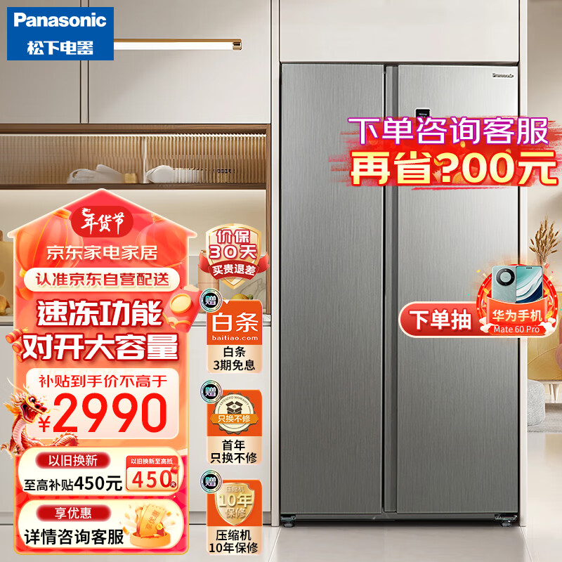 松下(Panasonic)570L 大容量 家用冰箱 一键智能速冻锁鲜变频低噪风冷无霜 银离子除菌 双开门对开门 冰箱 NR-JW59MSB-S价格:2990.00元!