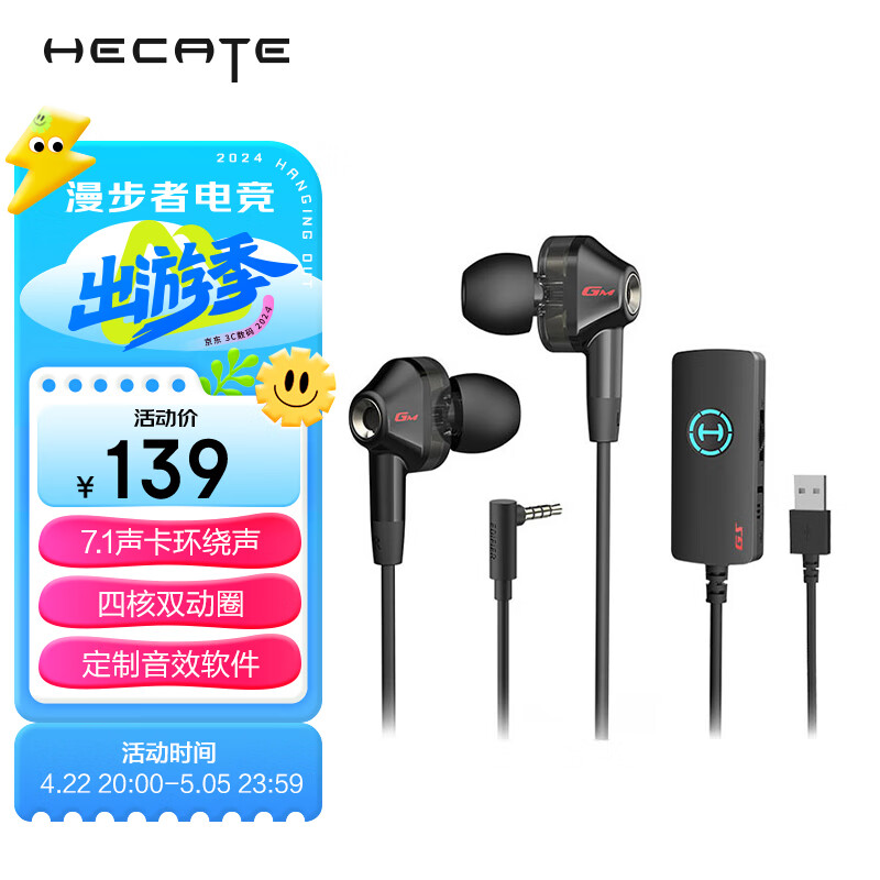 漫步者(EDIFIER)HECATE GM360声卡版 入耳式双动圈四核游戏耳机 电脑手机耳麦 7.1声道外置声卡 黑色价格:139.00元!