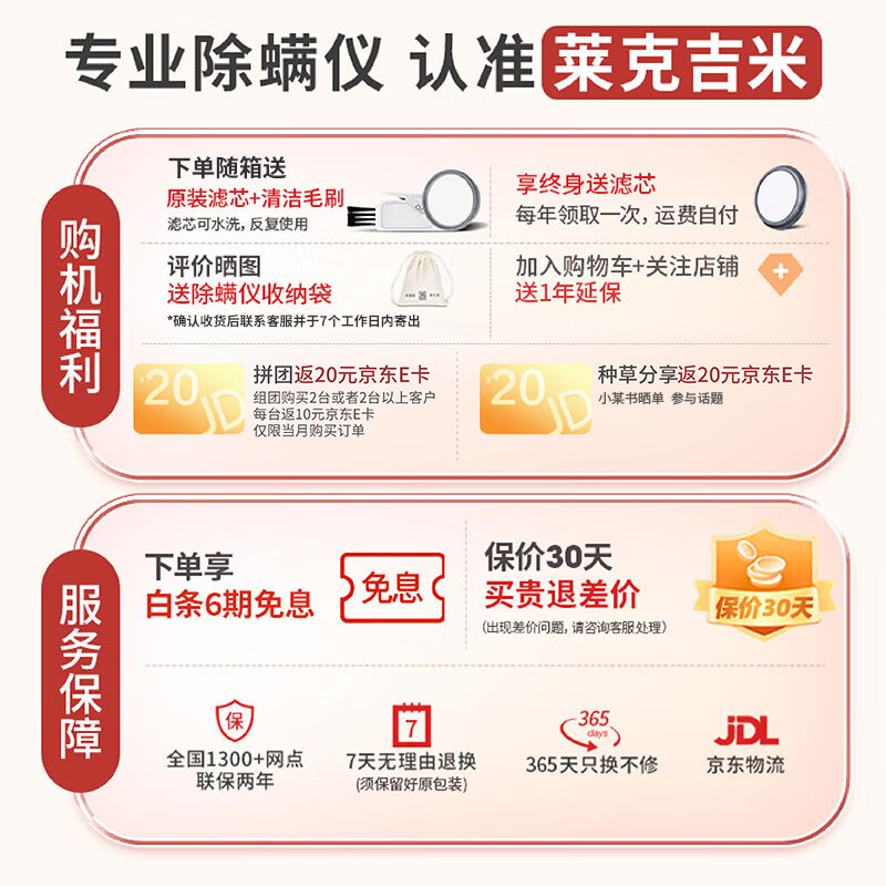 莱克吉米除螨吸尘神器B6PRO母婴级家用床上小型手持超声波紫外线杀菌去螨虫大吸力除螨仪一体机价格:876.00元!