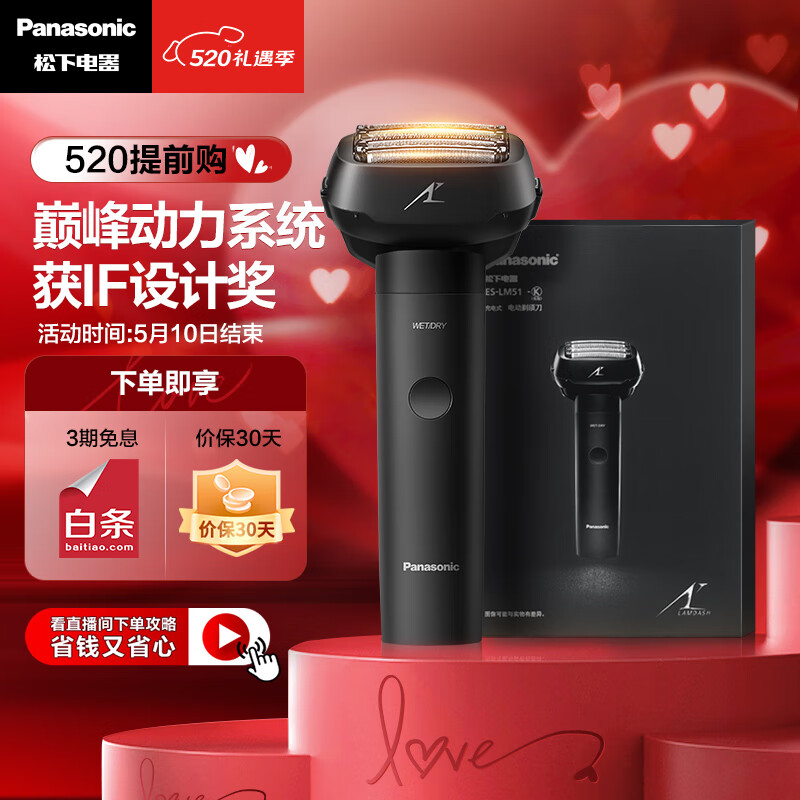 松下(Panasonic)大锤子剃须刀刮胡刀电动往复式小锤子pro磁悬浮马达进口刀头生日礼物男520情人节送男友老公LM51黑价格:799.00元!