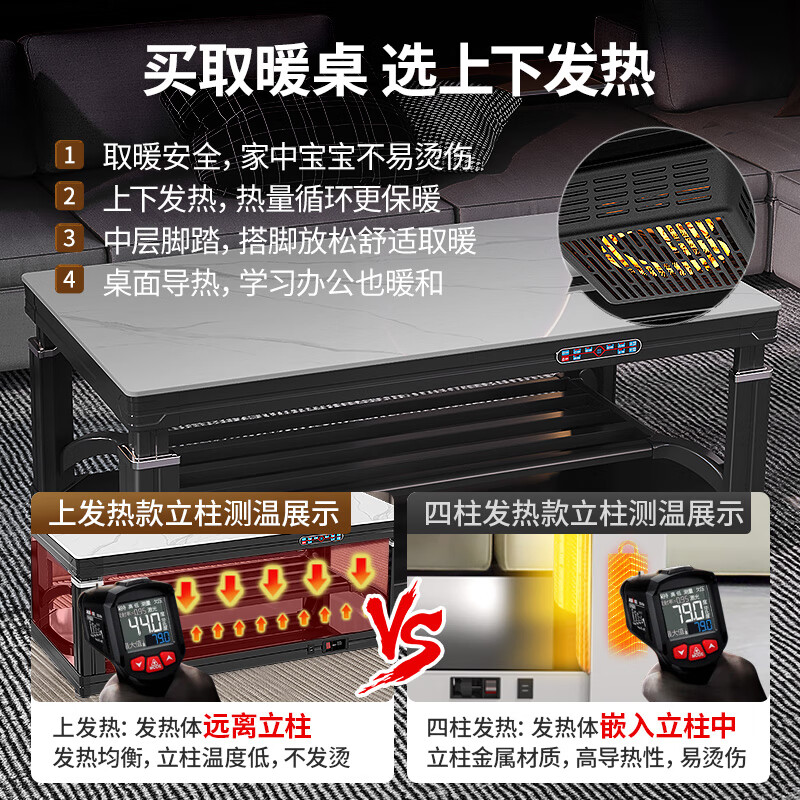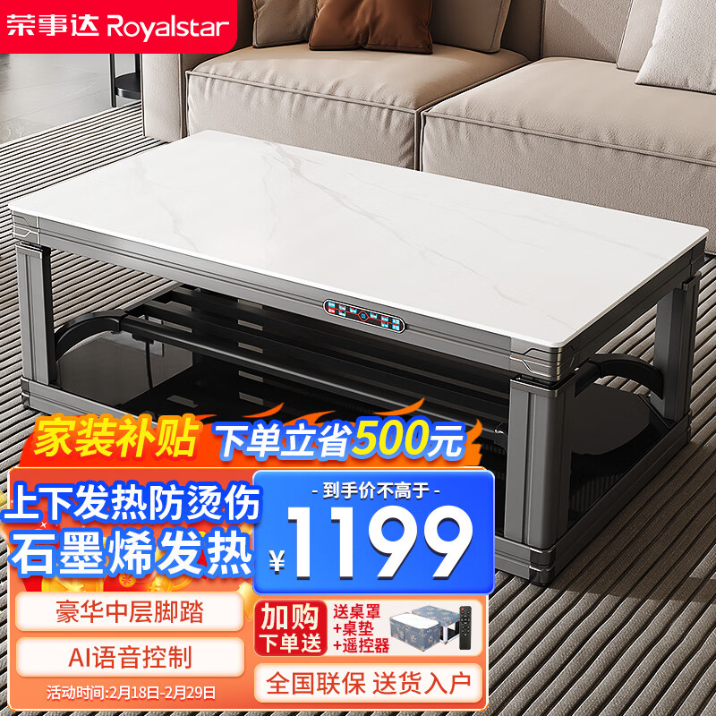 荣事达电暖桌1.2米石墨烯发热烤火茶几带语音控制升降电暖炉家用取暖器取暖桌长方形餐桌烤火桌RC-C1价格:1699.00元!