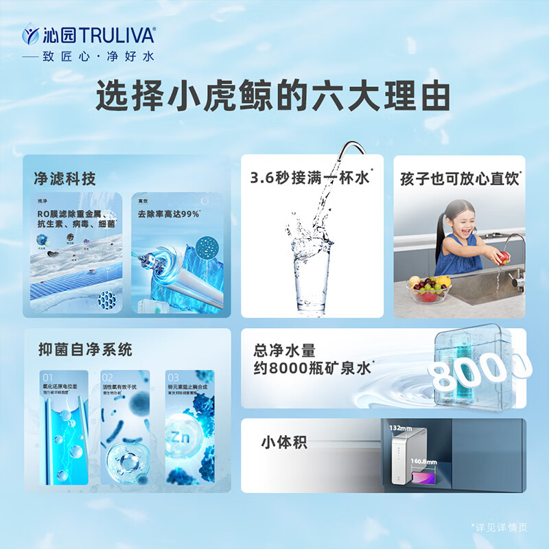 沁园(TRULIVA)小虎鲸800G+净水器 大通量厨下式无桶直饮纯水机 家用RO反渗透过滤器UR-S31046i价格:1899.00元!