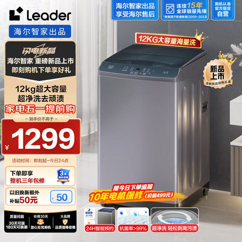 Leader海尔智家出品 波轮洗衣机全自动 12公斤大容量 超净洗去顽渍 洗衣参数可调 以旧换新 @B120Z369价格:1299.00元!