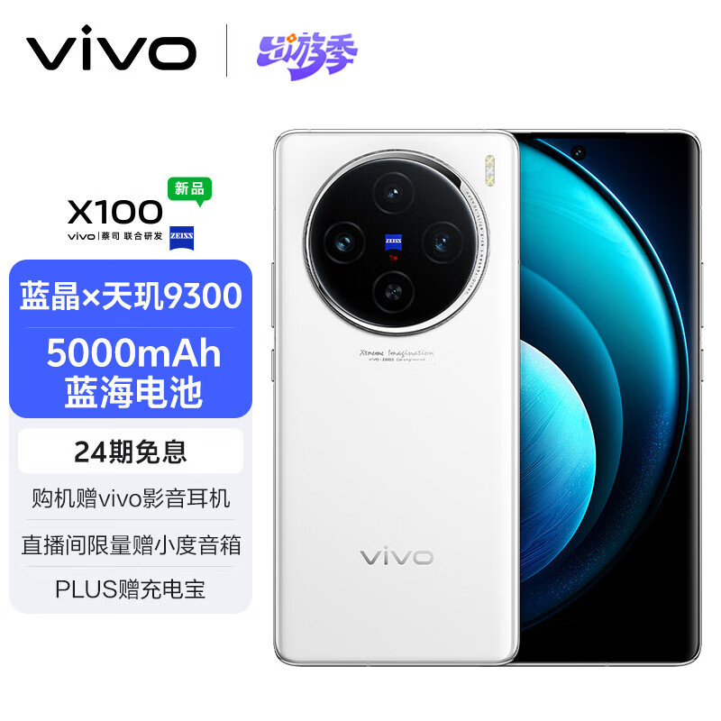 vivo X100 16GB+256GB 白月光 蓝晶×天玑9300 5000mAh蓝海电池 蔡司超级长焦 120W双芯闪充 拍照 手机价格:4299.00元!