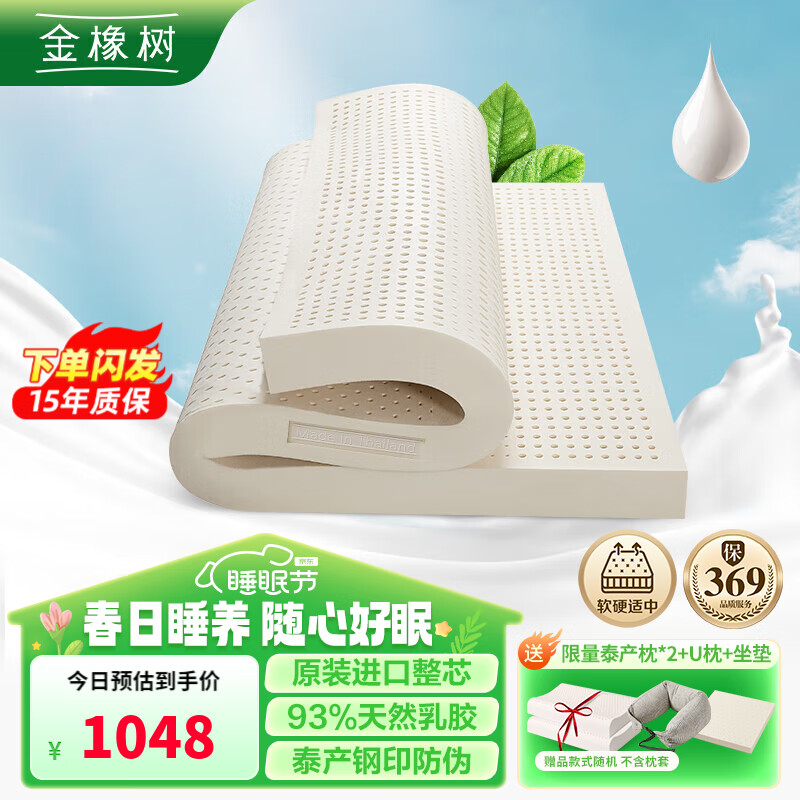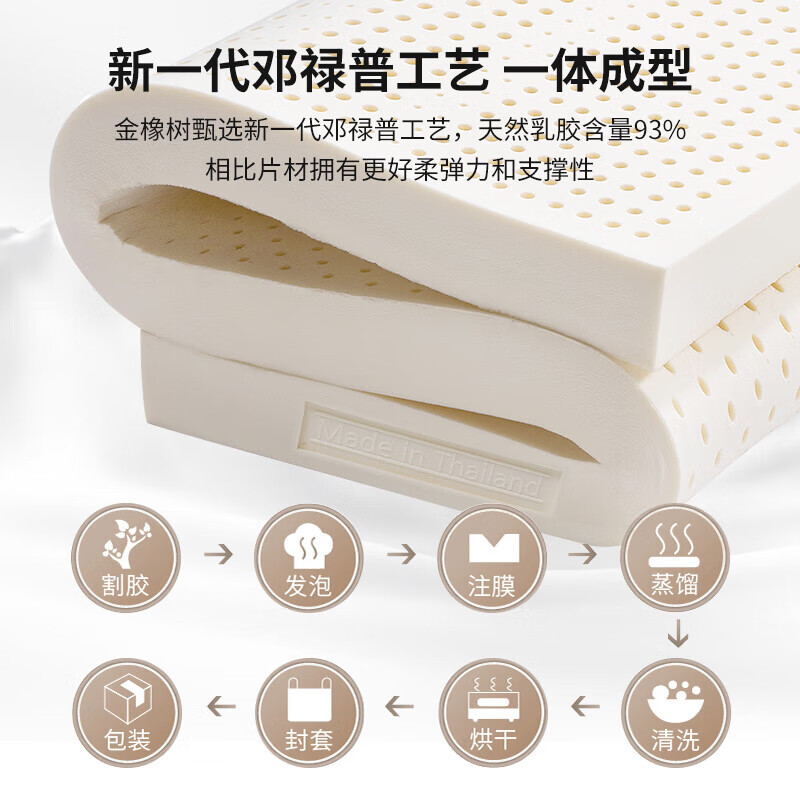 金橡树泰国原产整芯进口天然乳胶床垫双人床垫乳胶垫180*200*5cm 泰优价格:1048.00元!