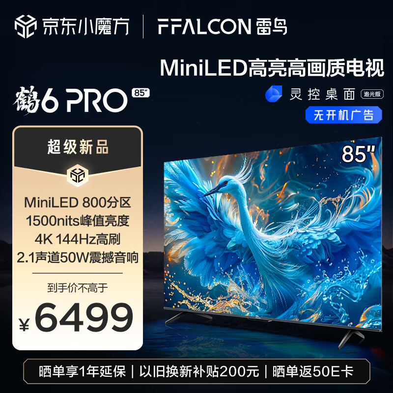 FFALCON雷鸟 鹤6 Pro 24款 MiniLED电视85英寸 800分区 1500nits 4+64GB 液晶平板电视机85S585C Pro价格:7499.00元!