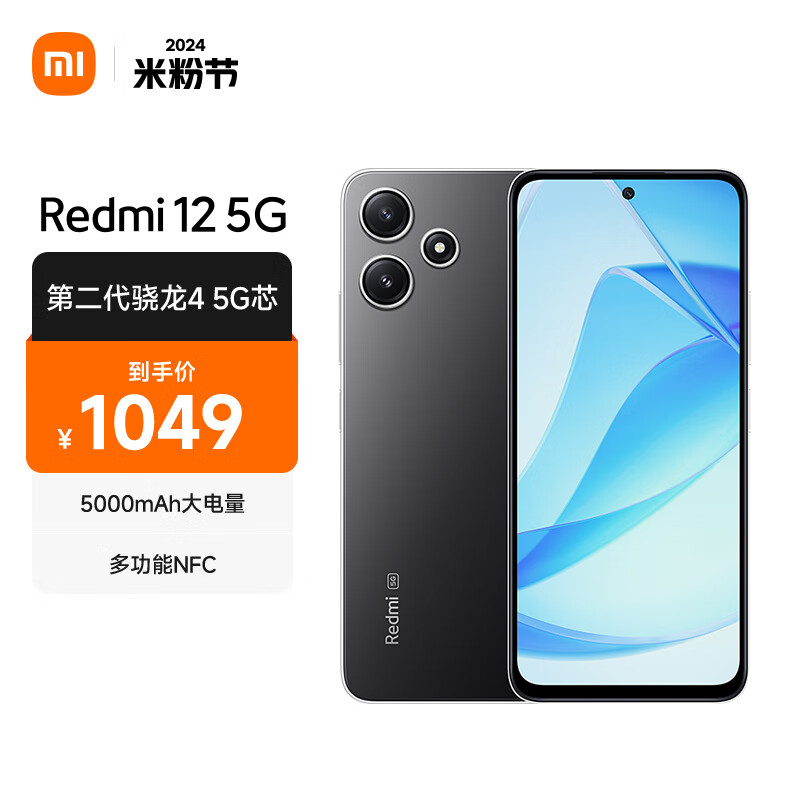 小米Redmi 12 5G 骁龙4第二代 双面玻璃机身 5000mAh大电量 8GB+128GB 星岩灰 SU7 手机价格:854.00元!