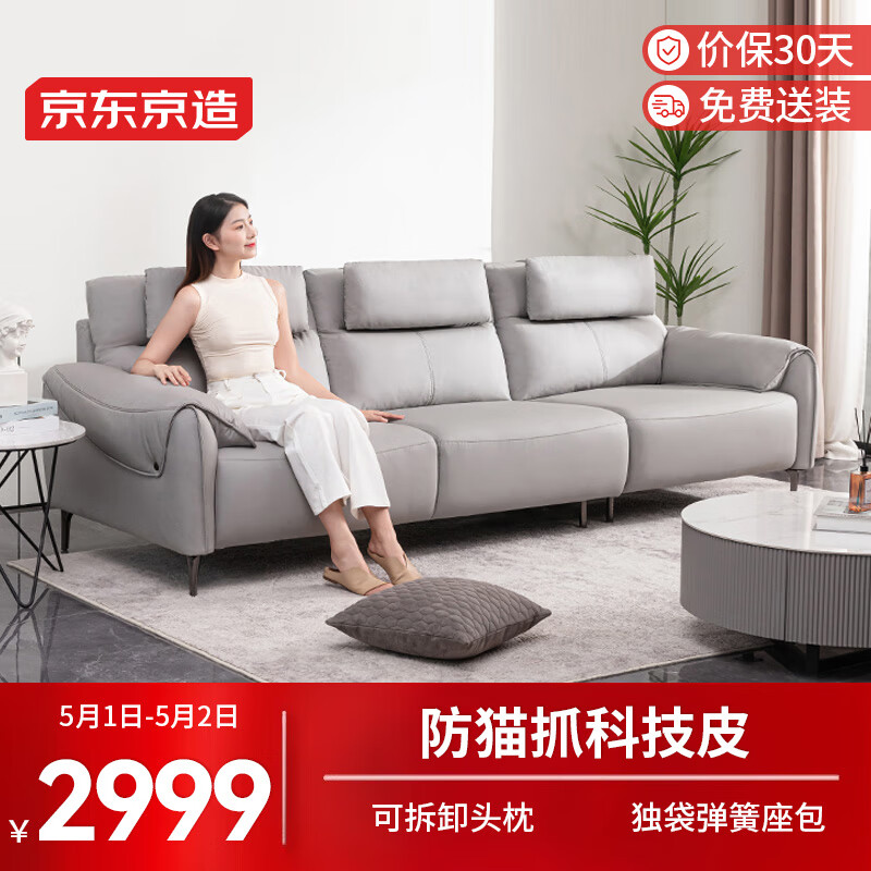 京东京造真皮沙发 北美头层牛皮可拆卸头枕弹簧座包 客厅大户型2.7m灰ST07价格:3499.00元!