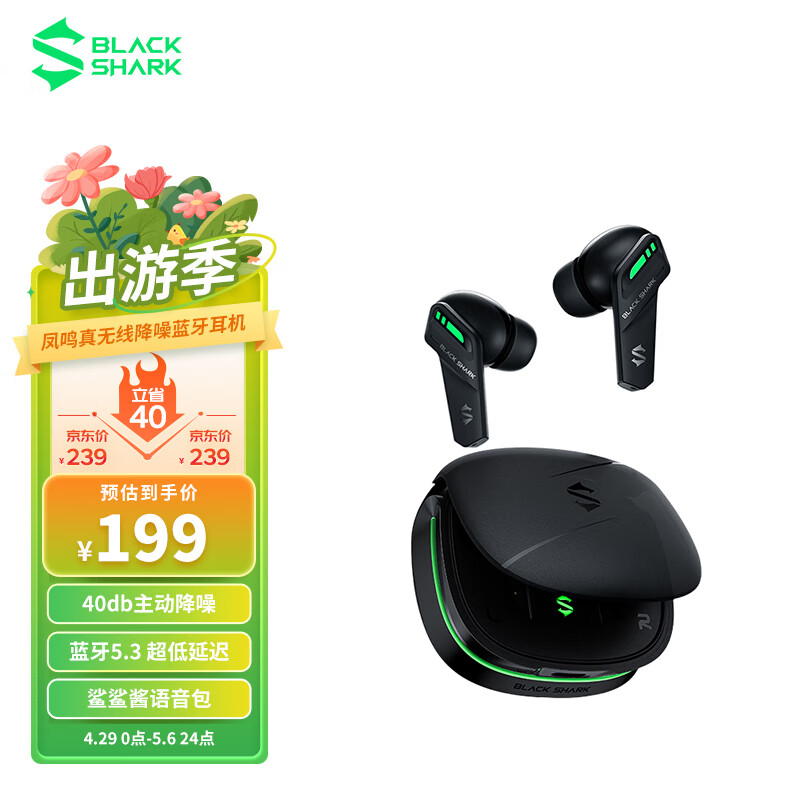 黑鲨凤鸣真无线主动降噪蓝牙耳机青春版 超低延迟 超长续航 TWS游戏运动电竞耳机 苹果华为小米通用价格:199.00元!