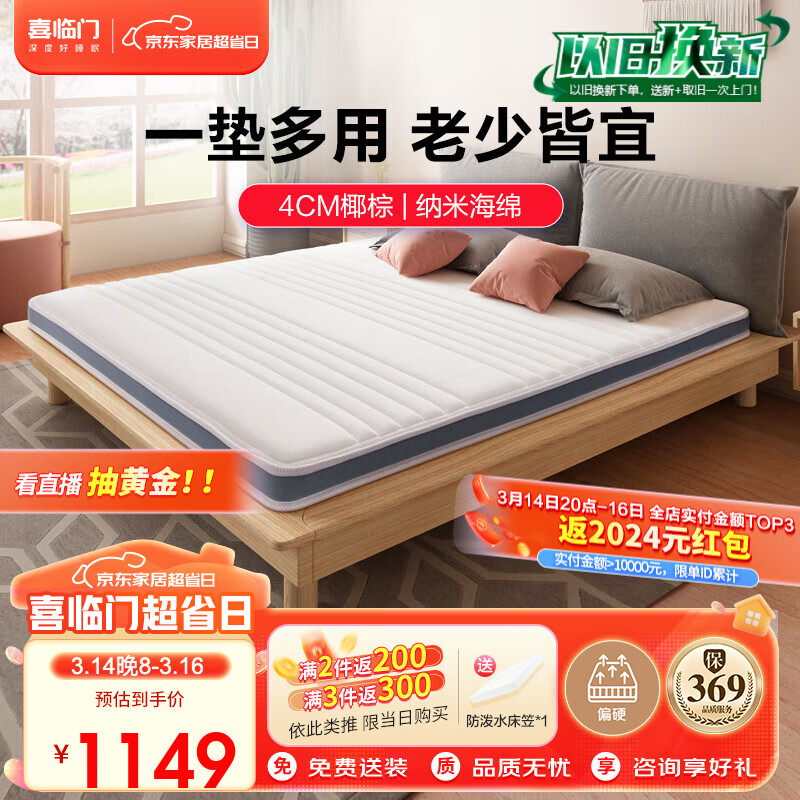 喜临门薄垫 4cm椰棕床垫 抑菌防螨青少年老人床垫 伊菲10 2S 1.35x1.9米价格:1149.00元!
