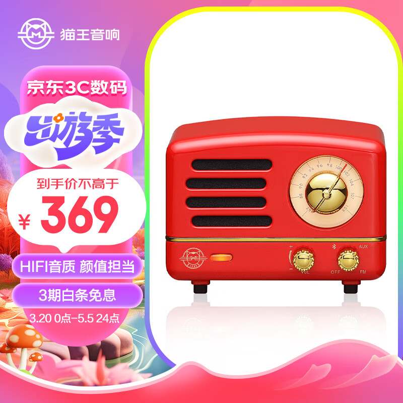 猫王收音机猫王音响 猫王小王子OTR无线便携式蓝牙音箱可爱复古小音响家用金属低音炮收音机 嬉皮红价格:369.00元!