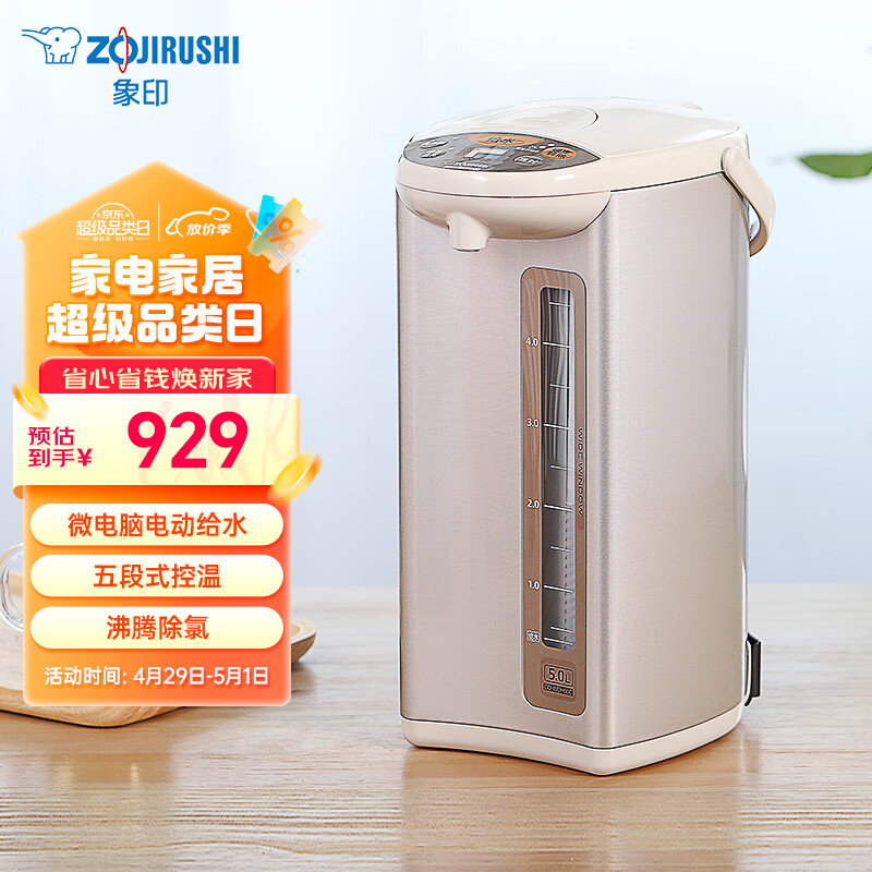 象印(ZO JIRUSHI)电水壶五段控温微电脑可定时 家用办公5L容量 CD-WDH50C-CM(米色)价格:929.00元!