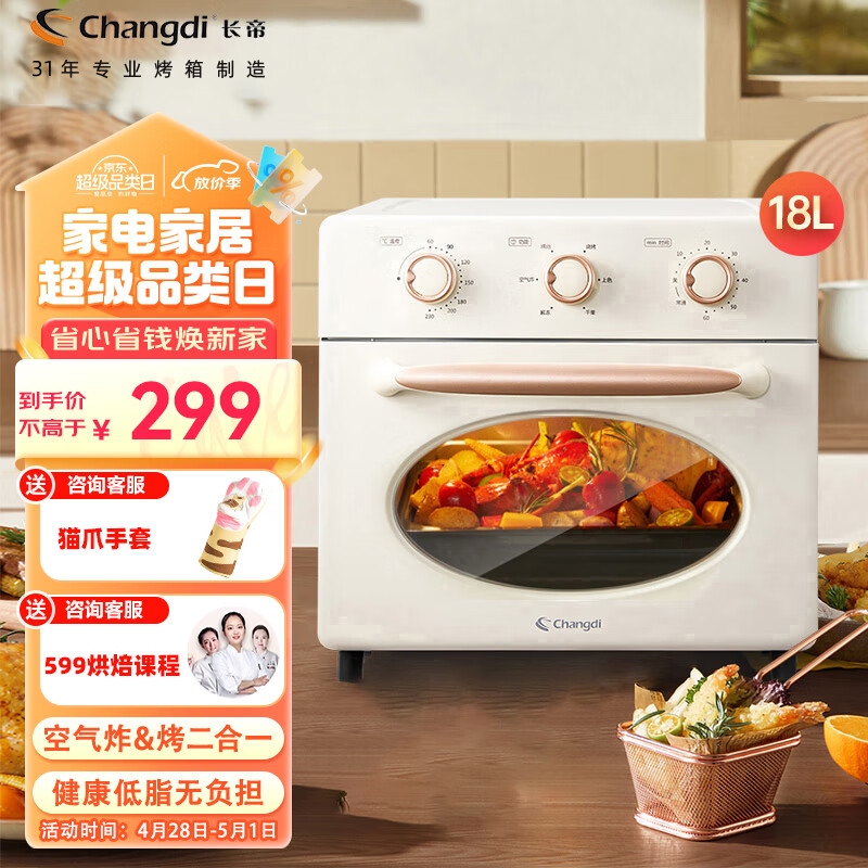 长帝 (changdi )家用空气炸锅烤箱 18升炸烤二合一 健康无油炸 多功能电烤箱 机械易操作 圆脸猫价格:319.00元!