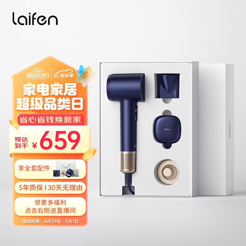 徕芬Laifen吹风机家用 大功率速干高速电吹风 莱芬负离子护发低噪音吹风筒 蓝金礼盒(升级款)价格:1200.00元!