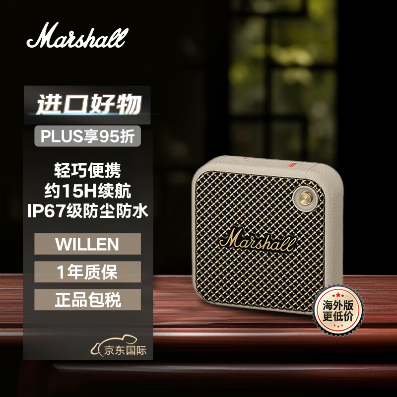 MARSHALL(马歇尔)WILLEN 音箱便携式蓝牙无线家用户外防尘防水小音响 油彩白价格:749.00元!