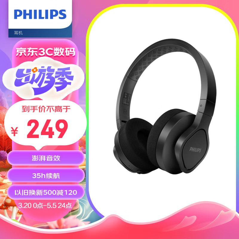 飞利浦(PHILIPS)头戴式耳机蓝牙耳机运动耳机可水洗耳罩垫手机电脑通用苹果华为小米安卓手机通用TAA4216黑价格:249.00元!