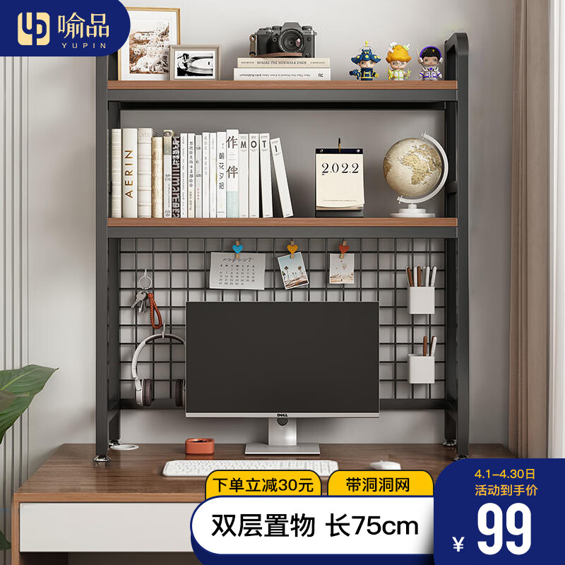 喻品书架桌上学生宿舍电脑桌书房文具收纳架可悬挂置物架ZW95双层75黑价格:129.00元!