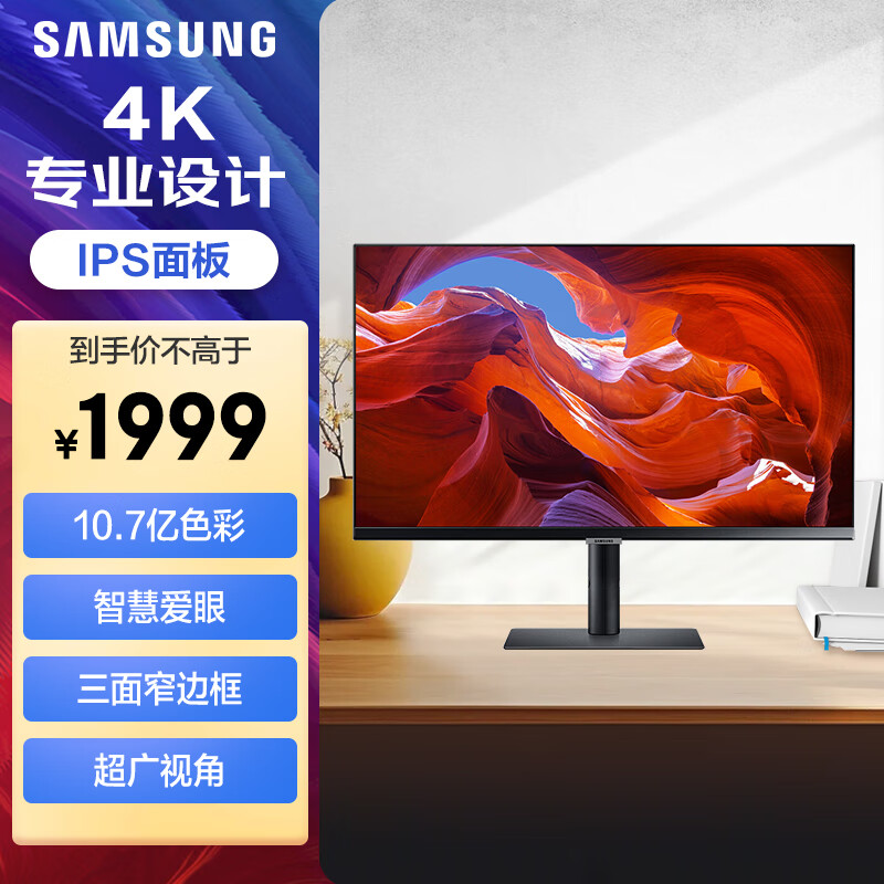 三星(SAMSUNG)27英寸 4K IPS HDR 10.7亿色 99% sRGB usb3.0 智慧爱眼 S80A 办公 电脑 显示器 S27A800N价格:2499.00元!