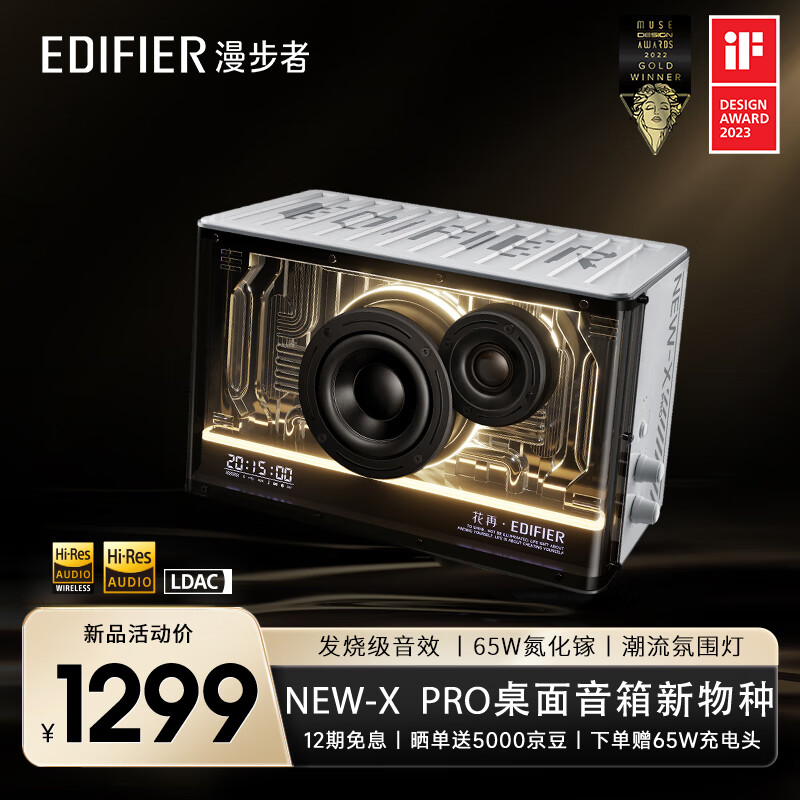 漫步者(EDIFIER)NEW-X PRO 光冷能量音箱 经典新升级 蓝牙电脑音响 电竞游戏桌面音响 潮流氛围灯 极光白价格:1299.00元!