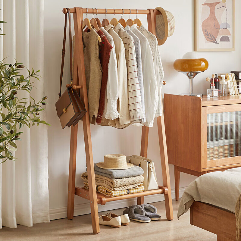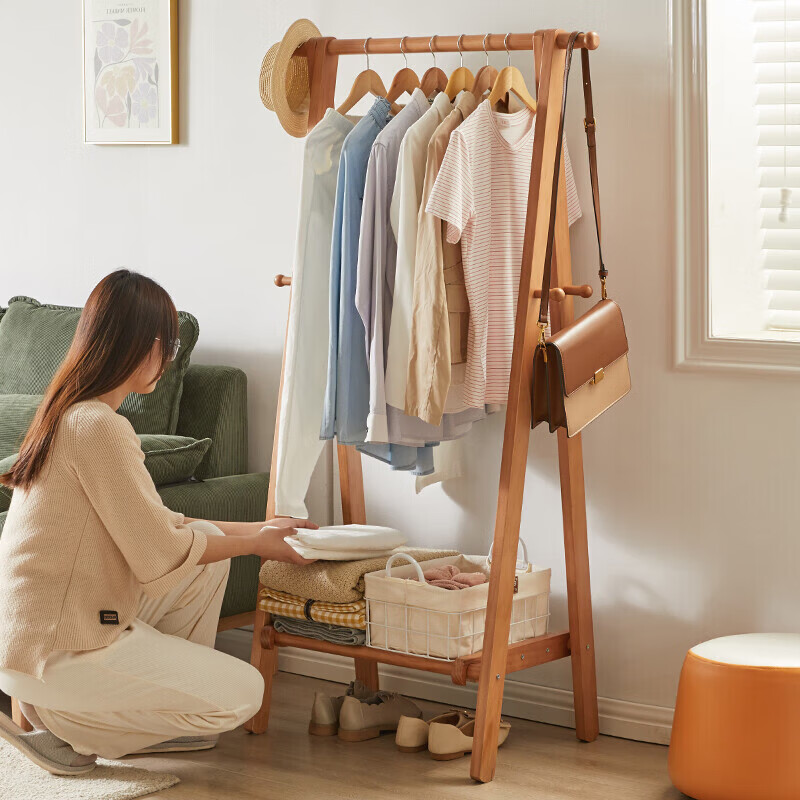 家逸衣帽架实木落地衣架卧室挂衣架可折叠衣架简约衣服架子RF-SM188价格:165.00元!