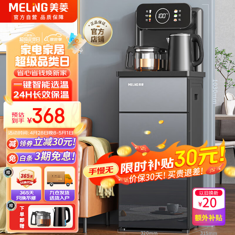 美菱(MeiLing)茶吧机家用高端客厅多功能智能遥控立式下置式饮水机全新升级【玻璃彩屏】制冷款MY-C565-B价格:398.00元!