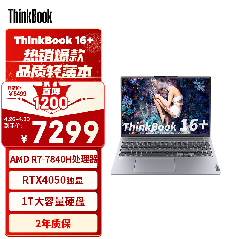 ThinkPad联想笔记本电脑ThinkBook 16+ 锐龙版 16英寸便携轻薄办公本R7-7840H 32G 1T RTX4050 2.5K 120Hz价格:7299.00元!