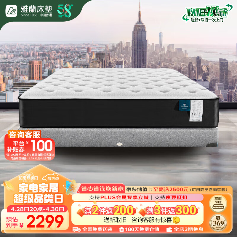 雅兰50周年纪念款 软硬适中独袋弹簧乳胶床垫 蘭朋友舒适2.0 1.5*2米价格:2699.00元!