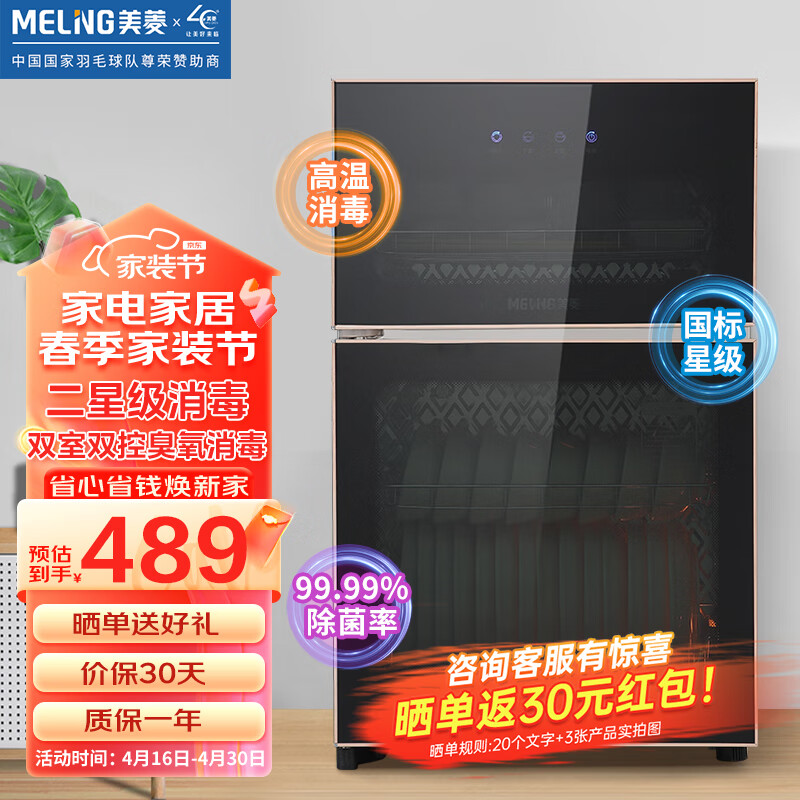 美菱(MeiLing)消毒柜 家用小型 迷你厨房桌面消毒碗筷餐具办公室茶杯消毒碗柜 婴儿奶瓶消毒机二ZTD75-108B价格:489.00元!