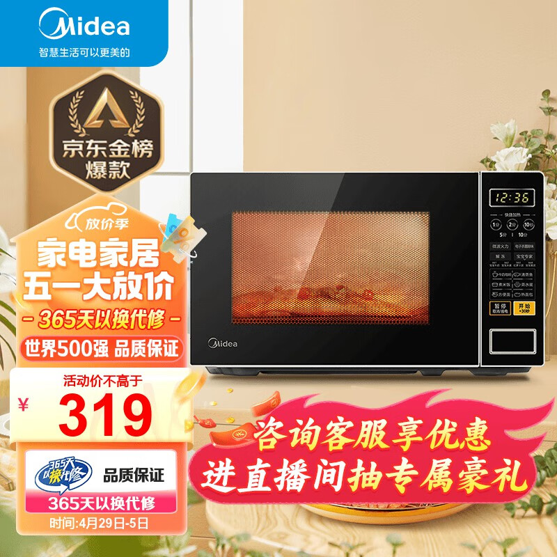 美的(Midea)微波炉 家用小型20升 转盘加热 智能菜单 一键解冻 杀菌电子除味 薄膜按键(M1-L213C)价格:319.00元!