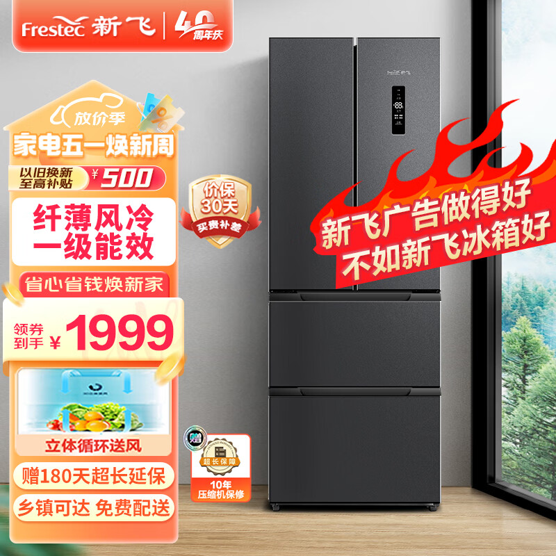 新飞(Frestec)336升变频一级能效法式多门冰箱家用无霜BCD-336WK7AT纤薄多维风冷循环价格:2099.00元!
