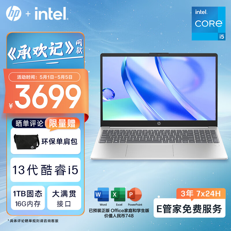 惠普HP 星Book 15.6英寸大屏高性能轻薄笔记本电脑(13代酷睿i5 16G 1TB 通过6项可靠性测试)银价格:3899.00元!