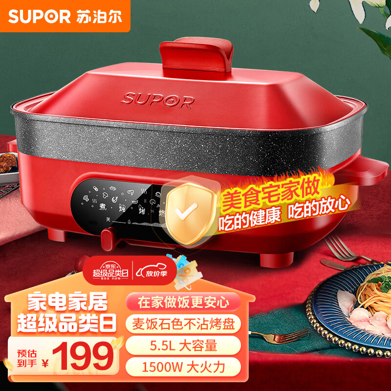 苏泊尔 SUPOR电火锅 电煮锅 电蒸锅电炒锅火锅专用锅多用途锅烤肉锅火锅锅多功能料理锅电热锅JD3424D808价格:199.00元!