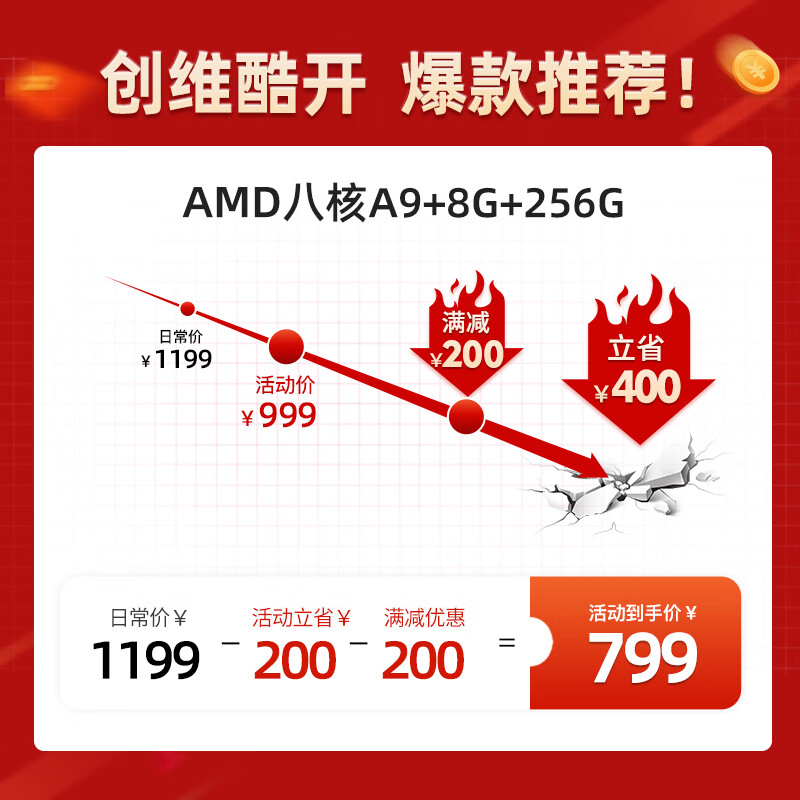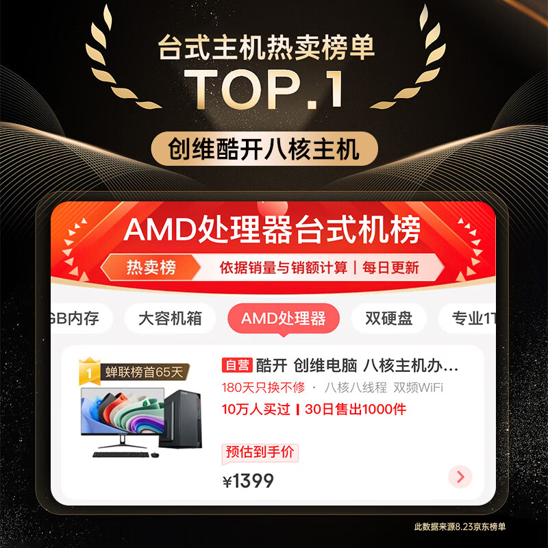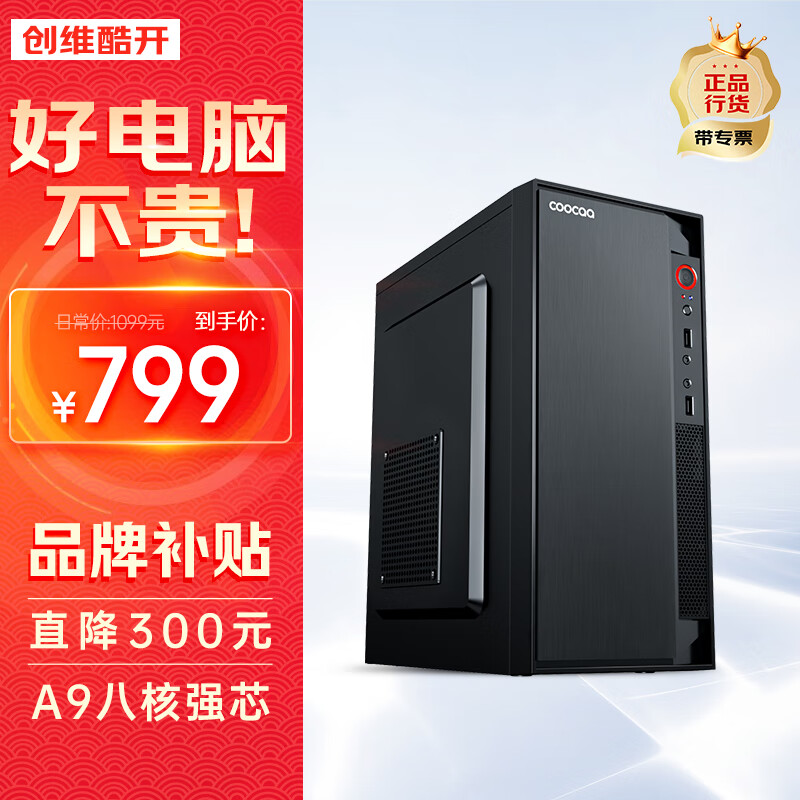 酷开 创维电脑 八核办公商用台式电脑主机(AMD八核A9 8G 256G SSD)价格:999.00元!