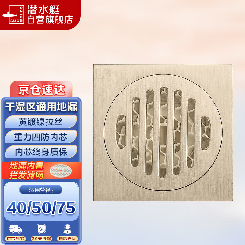 潜水艇(Submarine)LTF40-10 黄铜镀镍四防地漏干湿区通用超薄奶油风40管径价格:108.00元!