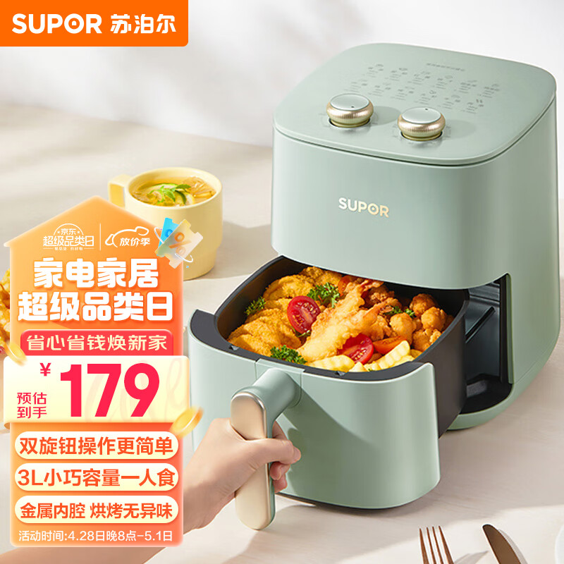 苏泊尔(SUPOR)空气炸锅家用3L大容量电炸锅 蒸汽嫩炸多功能无油烟煎炸薯条机KJ30D820价格:179.00元!