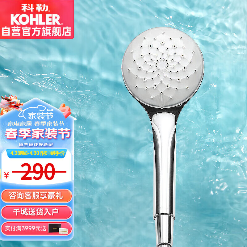 科勒KOHLER花洒头 手持花洒氧沐多功能手持花洒K-R99063T-CP流线型价格:362.00元!