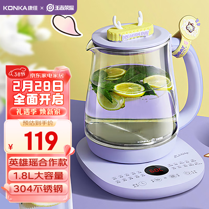 康佳(KONKA)荣耀定制X瑶 养生壶 煮茶器 玻璃保温开水烧水壶电热水壶 玻璃煮茶壶 1.8L KYSH-1800E-WZ价格:119.00元!