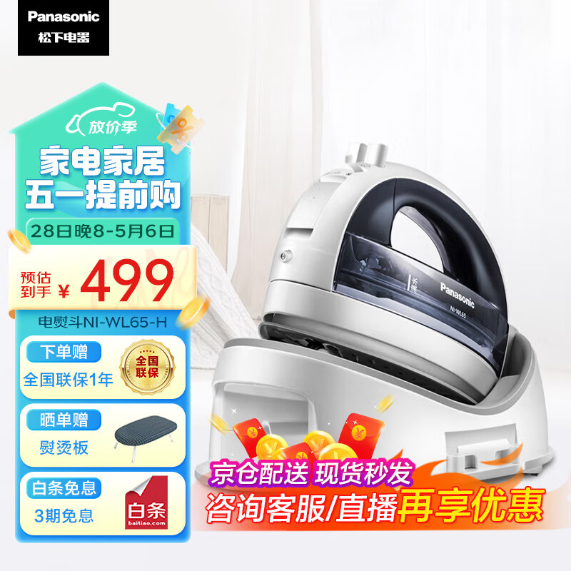 松下(Panasonic)电熨斗家用 手持无线挂烫机 电子恒温感应 自动断电 NI-WL65-H 白色价格:554.00元!