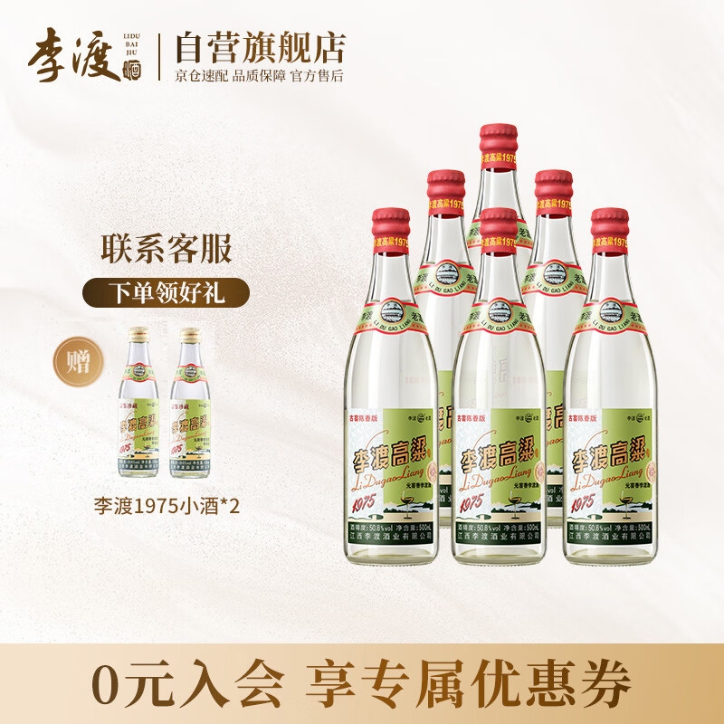 李渡 高粱1975 元窖香白酒 50.8度500ml*6瓶 整箱装 江西特产价格:3588.00元!
