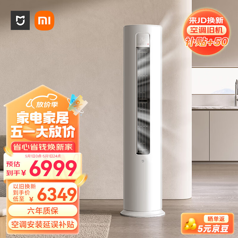 小米5匹 新能效 变频冷暖380V 内机自动清洁 客厅圆柱空调立式柜机 KFR-120LW/N1A3 巨省电价格:6999.00元!