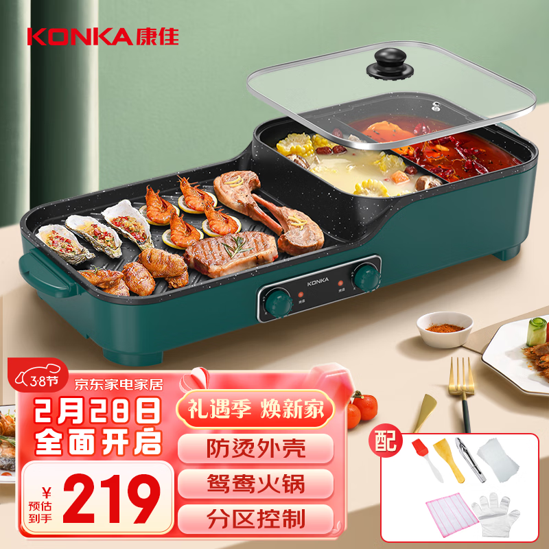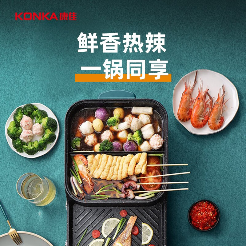 康佳(KONKA)电烧烤炉家用无烟电火锅烤肉串电烤盘 多功能烧烤机电烤炉烤肉机烤涮一体锅烤 KEG-W2201价格:219.00元!