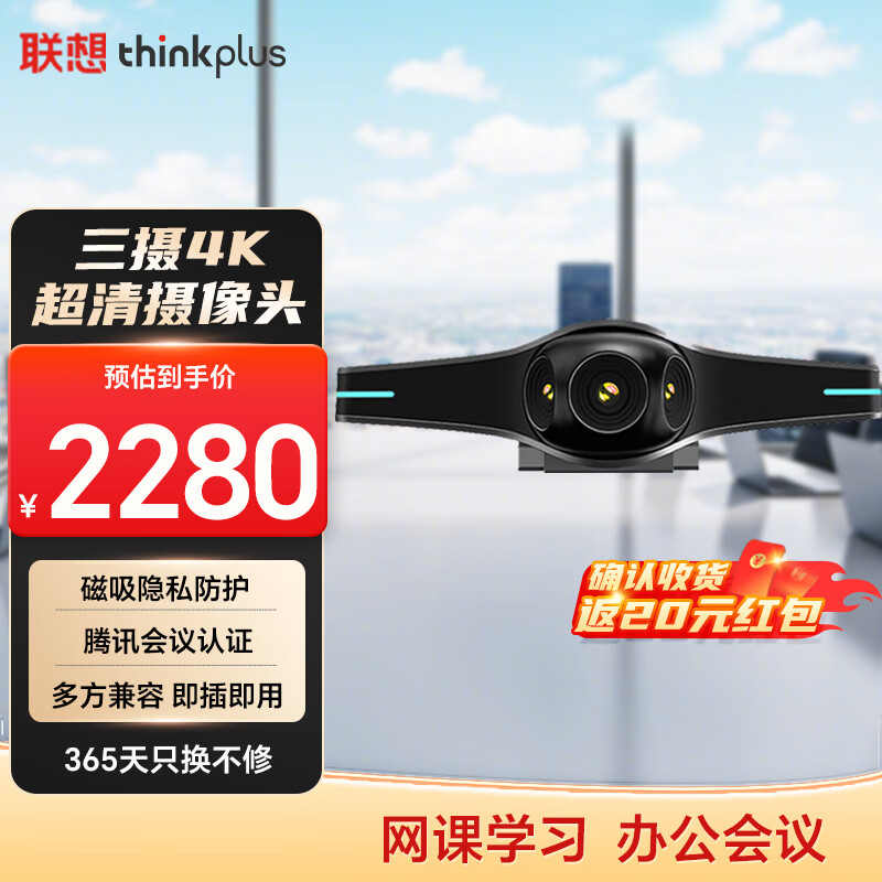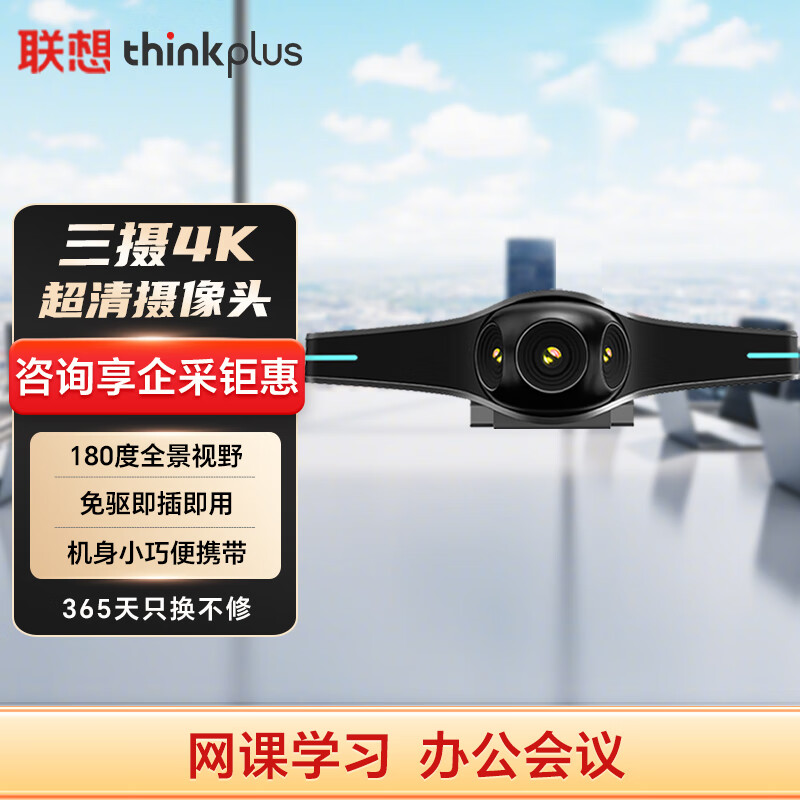 联想thinkplus180°广角全景智能会议摄像头/USB4K高清显示电脑摄像头款考研复试直播视频会议UW200价格:2399.00元!